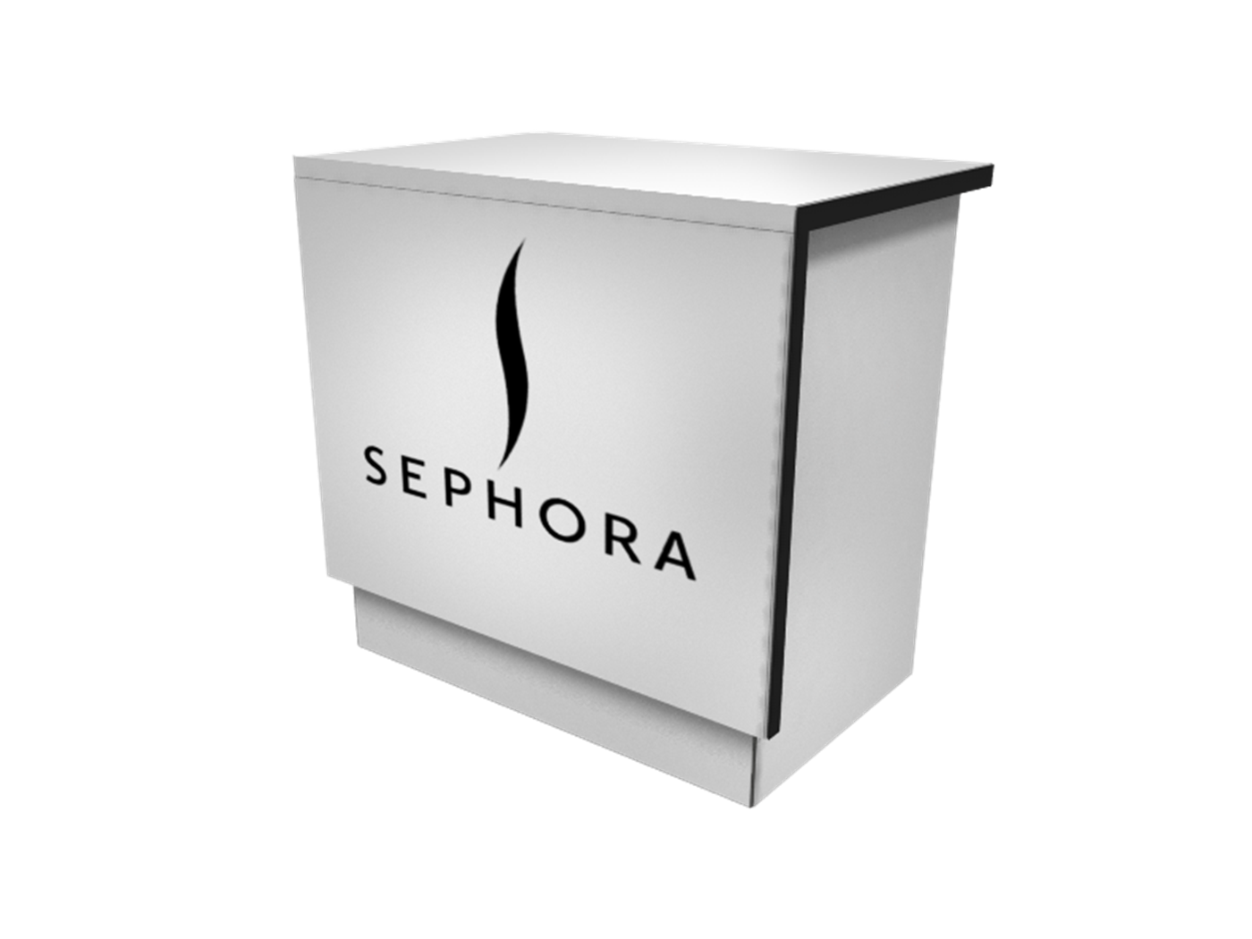 Rental standard counter with front overlay with LED accent lighting, access door and graphic.