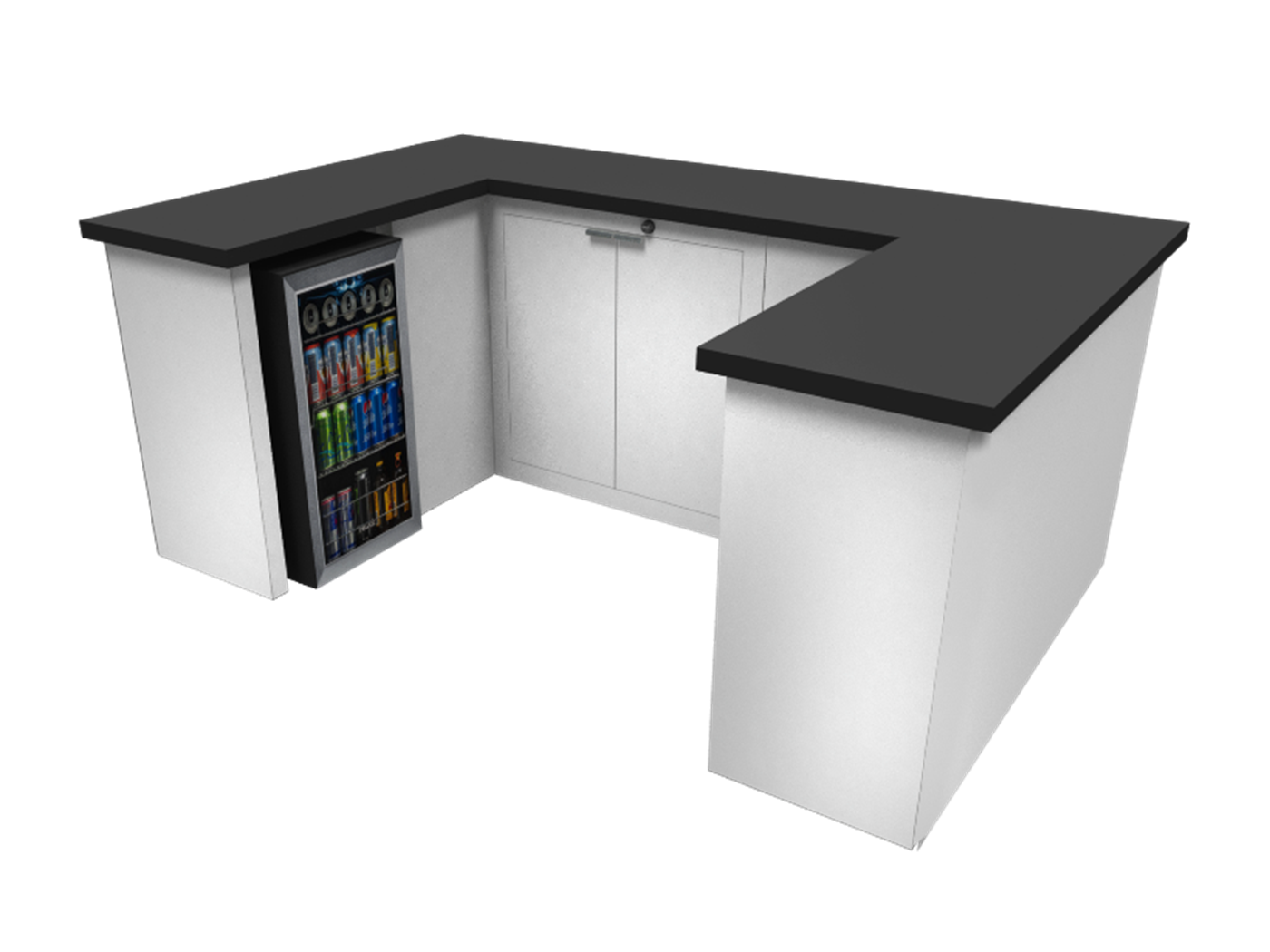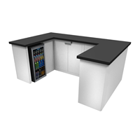 78"W x 58" Rental U-shaped refreshment counter designed with prefabricated aluminum frames and tool-less installation. Graphic printed in-house for excellent fit-n-finish.