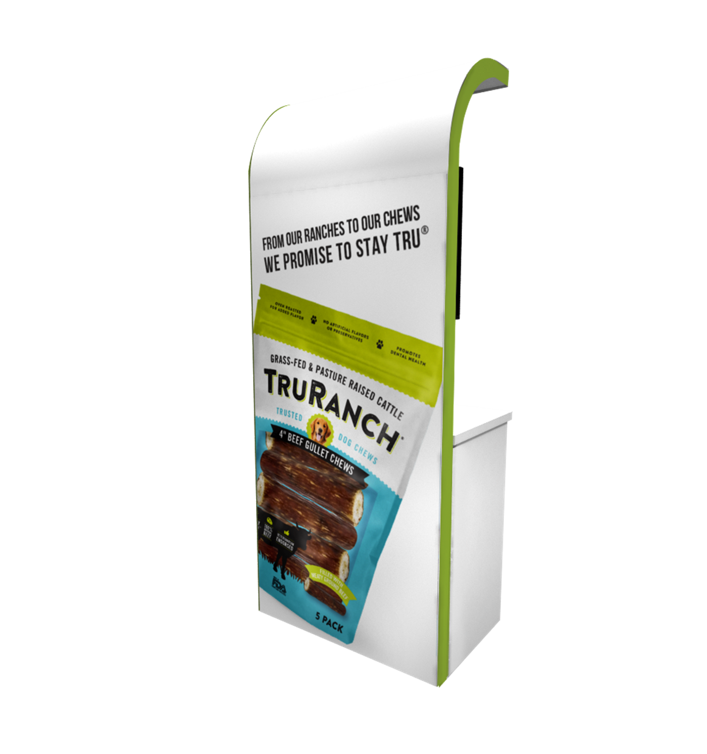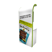 97" Rental kiosk with rectangular counter and curved canopy designed with pre-assembled aluminum FOUNDATION framing for tool-less installation and custom appeal. Graphics printed in-house for excellent colors and fit-n-finish.