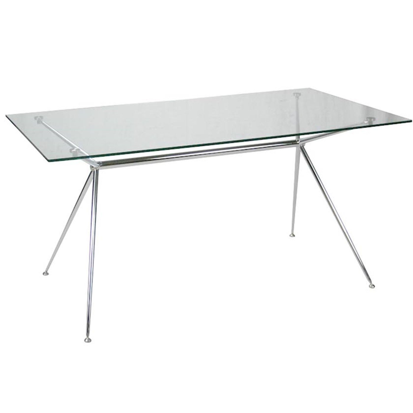 60" Rental Altos table with glass top and chrome accent finish.