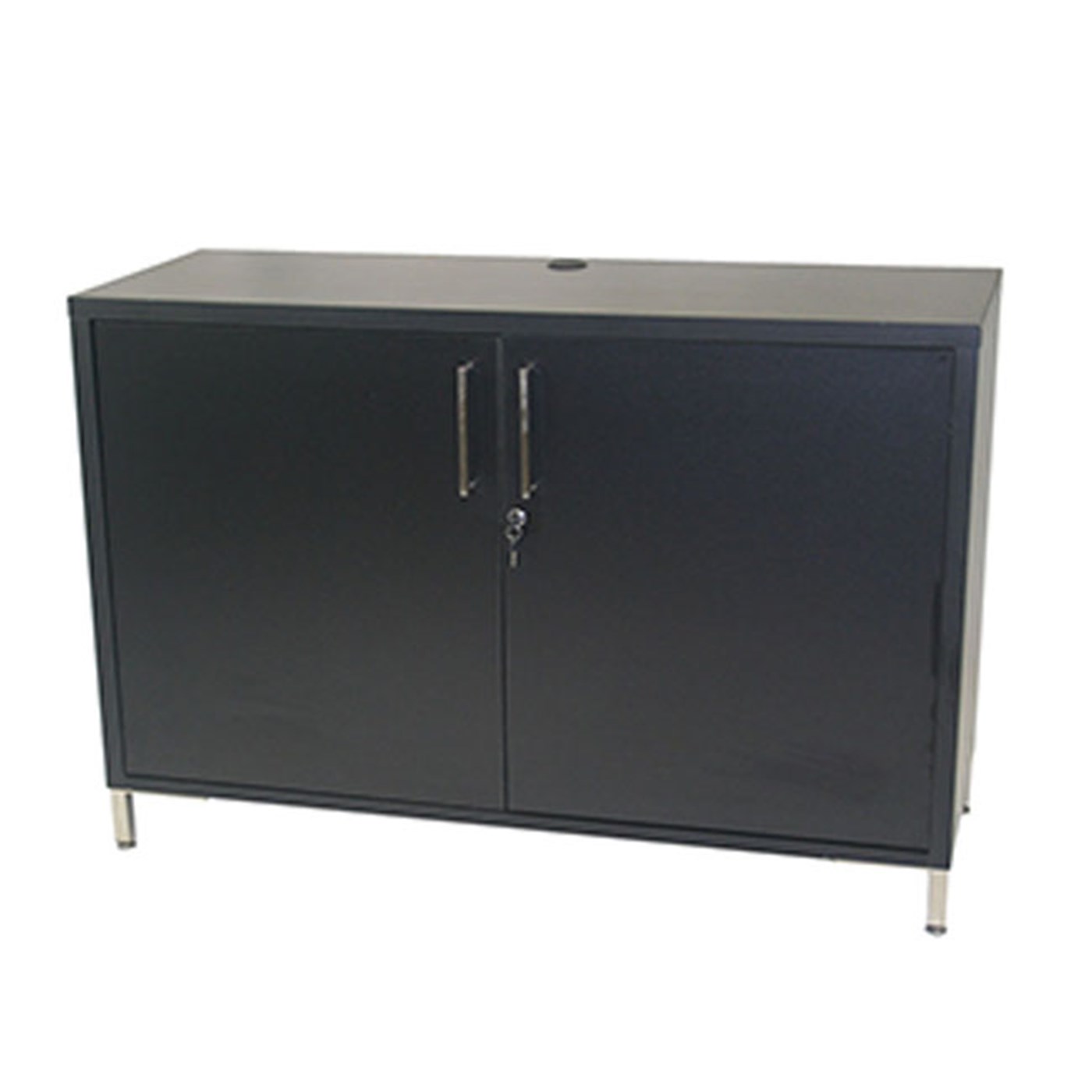 RACCLOF659 48" Credenza $537 Rental Credenza with wood finish, locking twin doors and chrome accents.