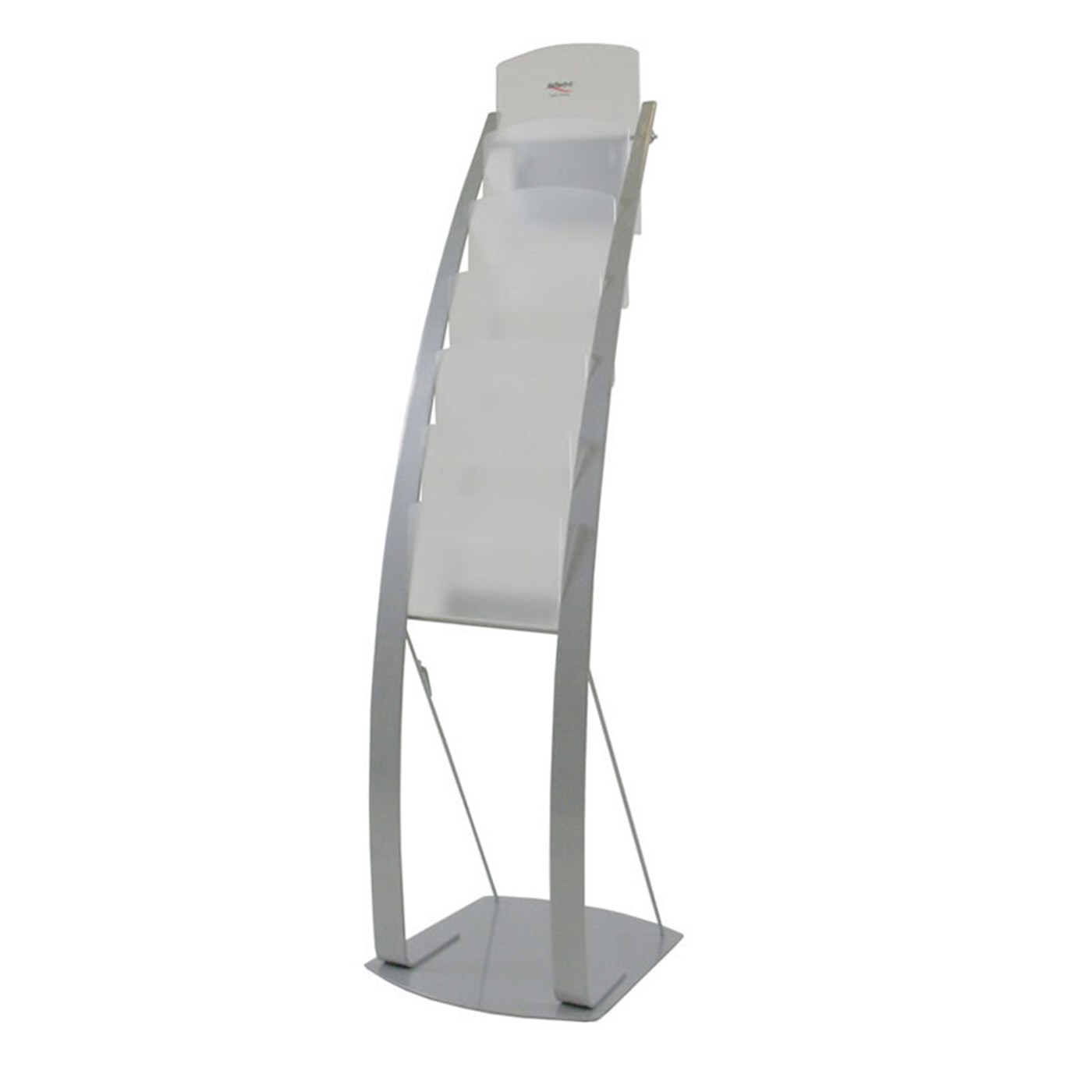 RACCSPLRXT915 50" Curved Six Pocket Lit Rack $241 Modern rental Curved six pocket lit rack with brushed chrome accents.