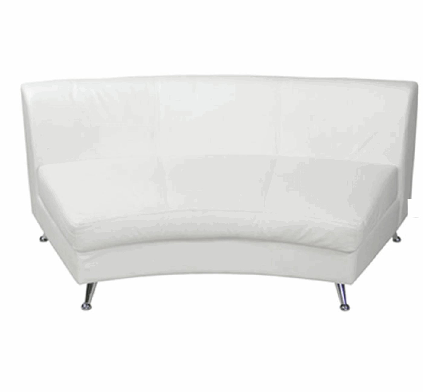 RACCSSLG720 71" Capri Sectional Sofa $655 Modern rental Capri curved leather sectional sofa with rich padded leather and chrome accents.