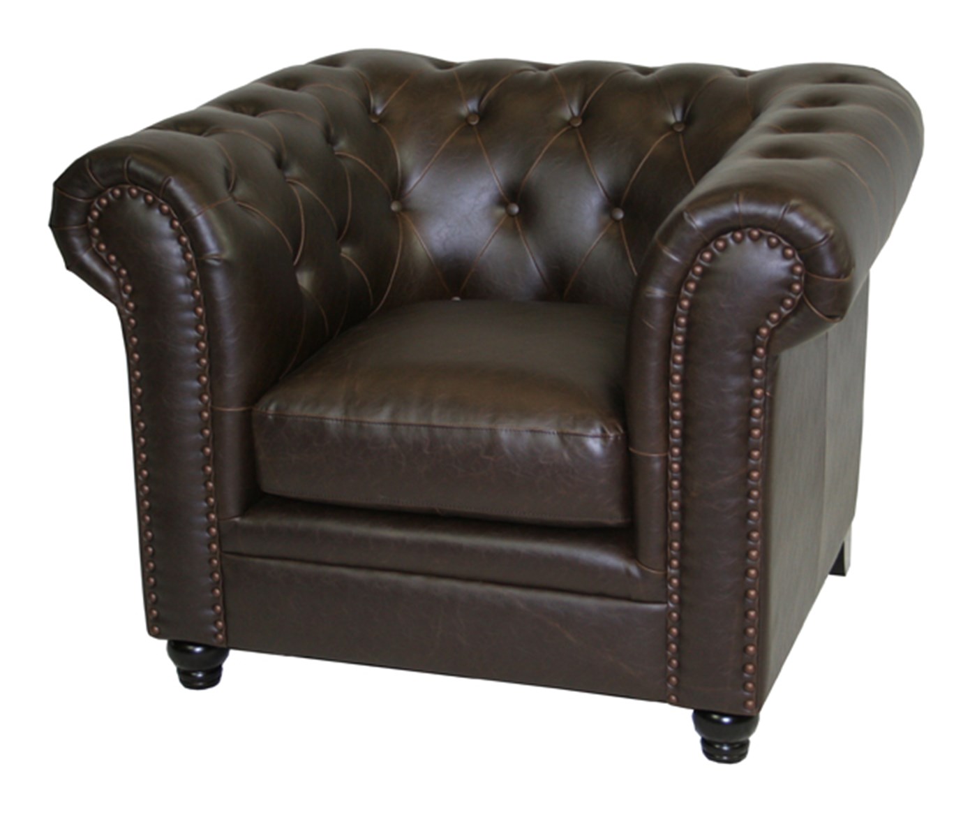 Traditional rental Havana chair with rich leather and accents.