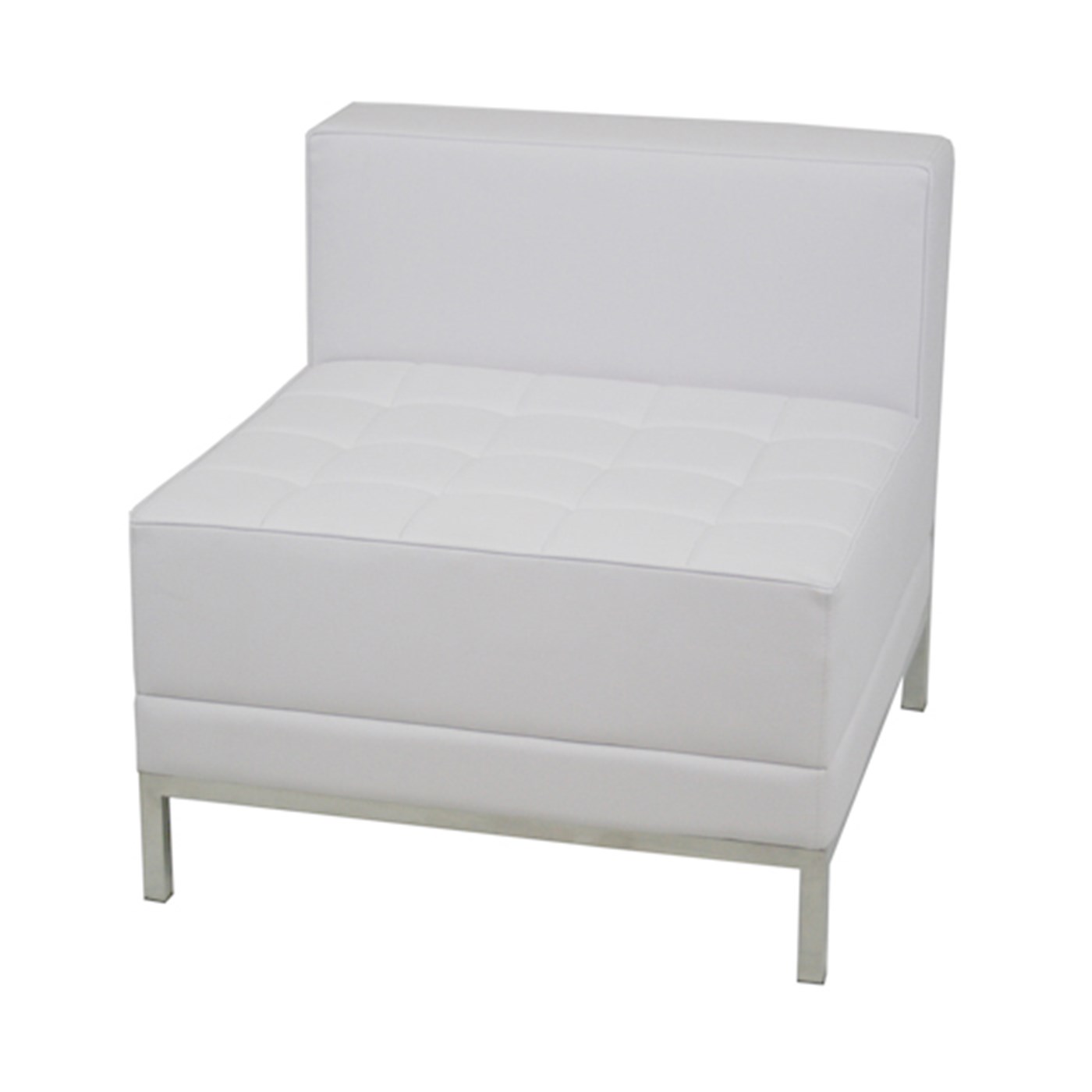 RACMACLG743 28" Maui Armless Sectional $290 Modern rental Maui arm-less sectional in plush white leather and chrome accents.