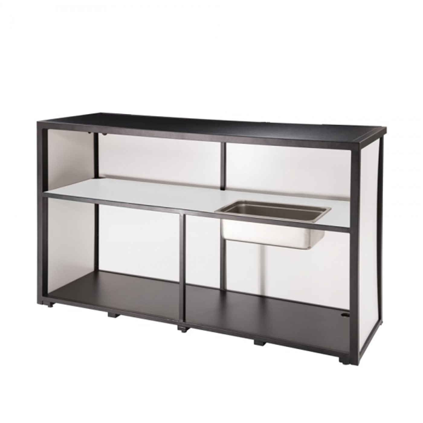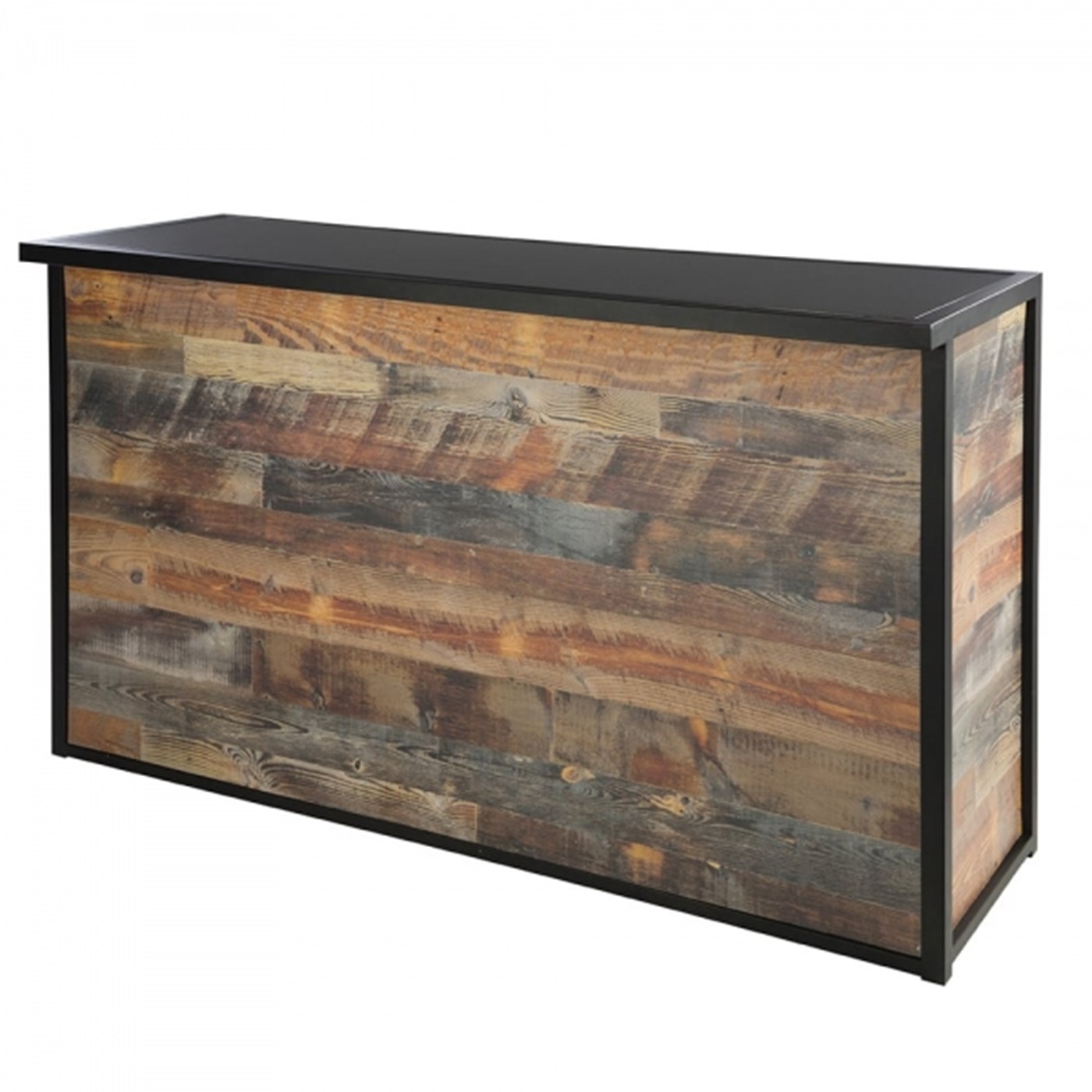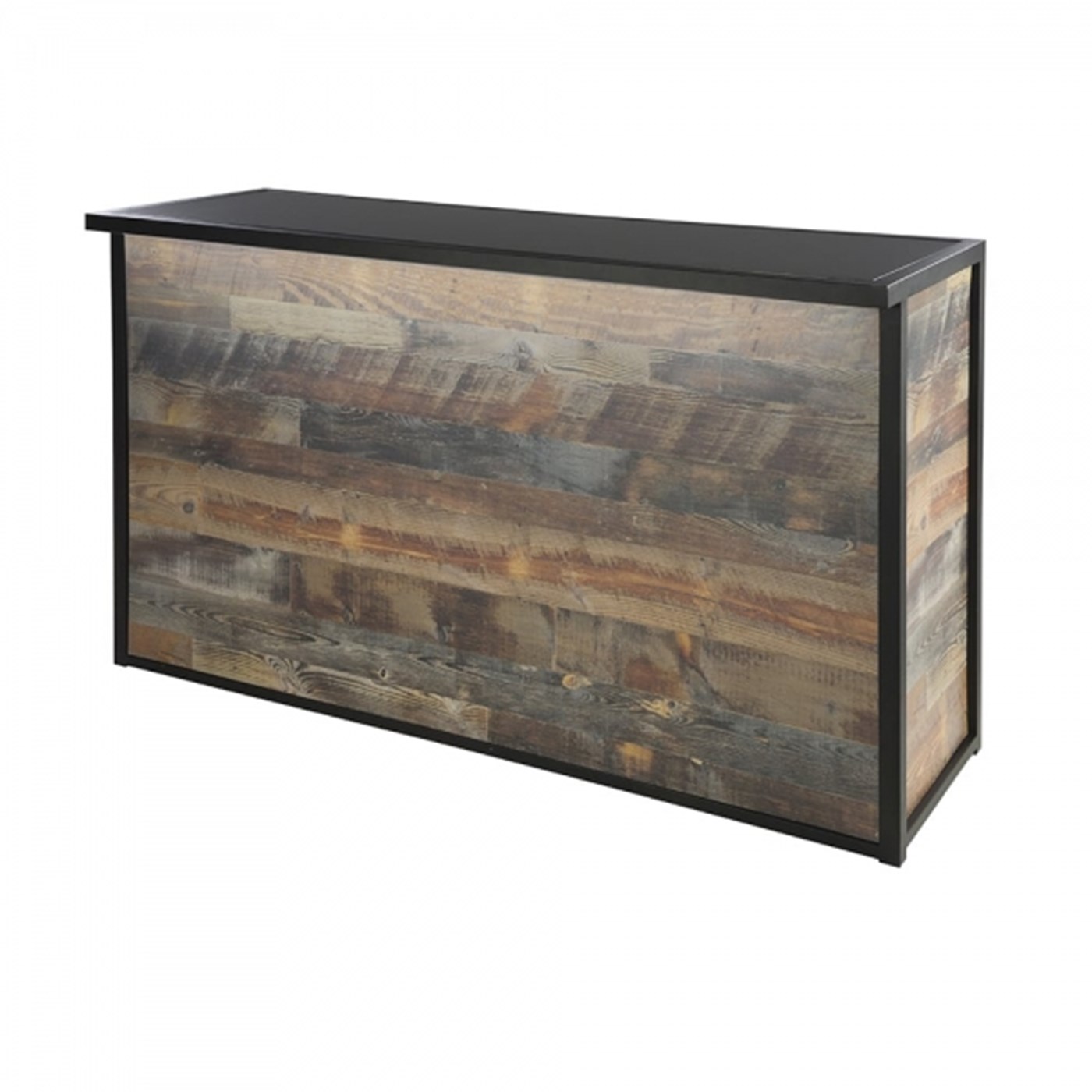 RACMBBFMAX616-CRT 72" Maxim Bar with Barnwood Finish $1,100 Classic rental black framed bar with barnwood laminate front and sides.