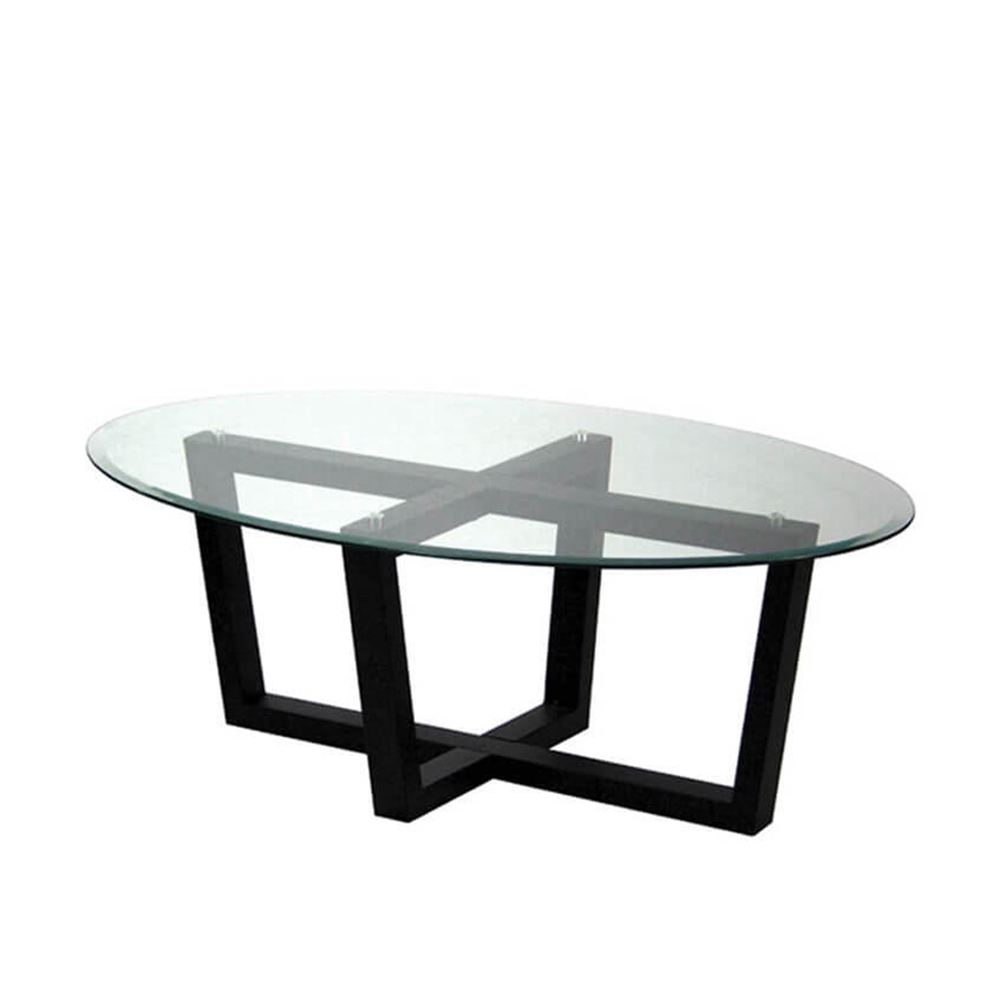 RACMOCTOT801 50" Monza Oval Cocktail Table $246 Modern Rental Monza oval cocktail table with glass top and black accents.