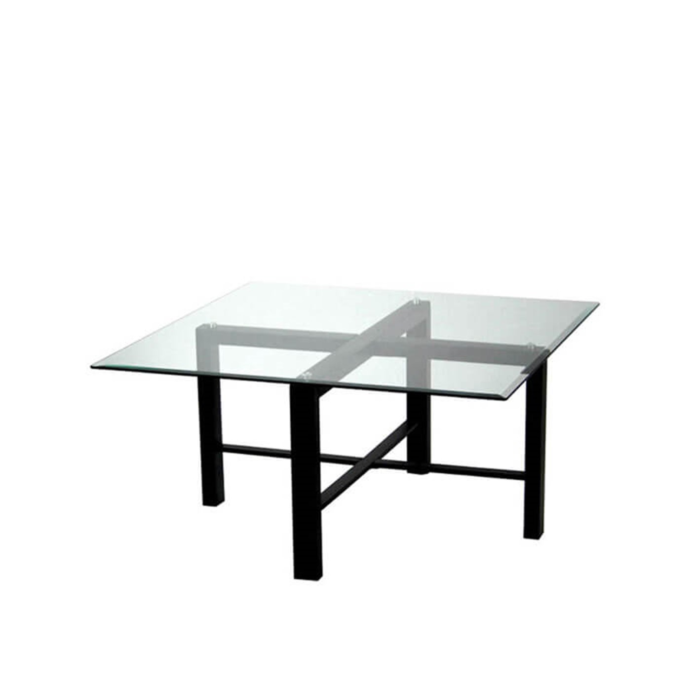 RACMSCTOT800 40" Monza Square Cocktail Table $263 Modern rental Monza square cocktail table with glass top and black accents.