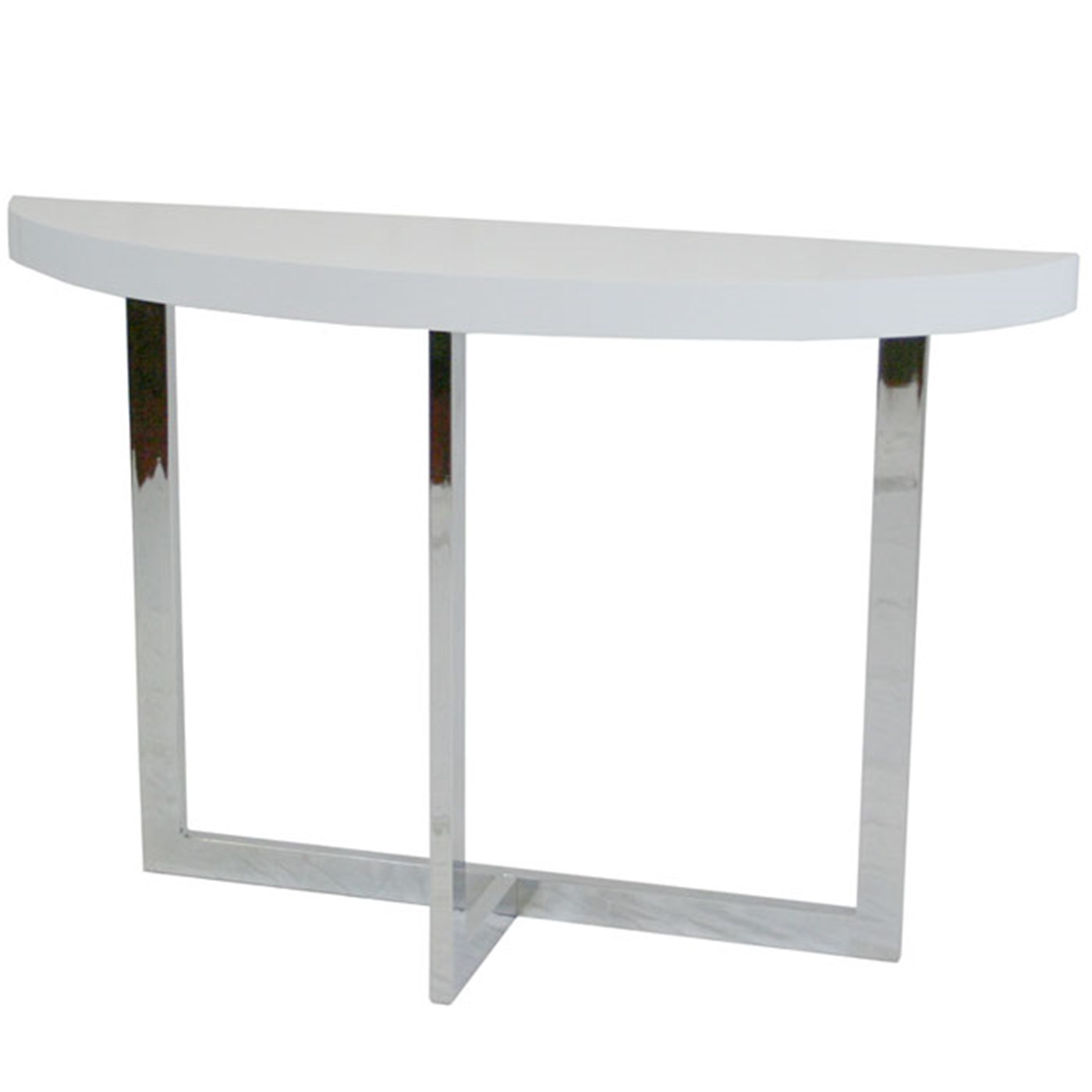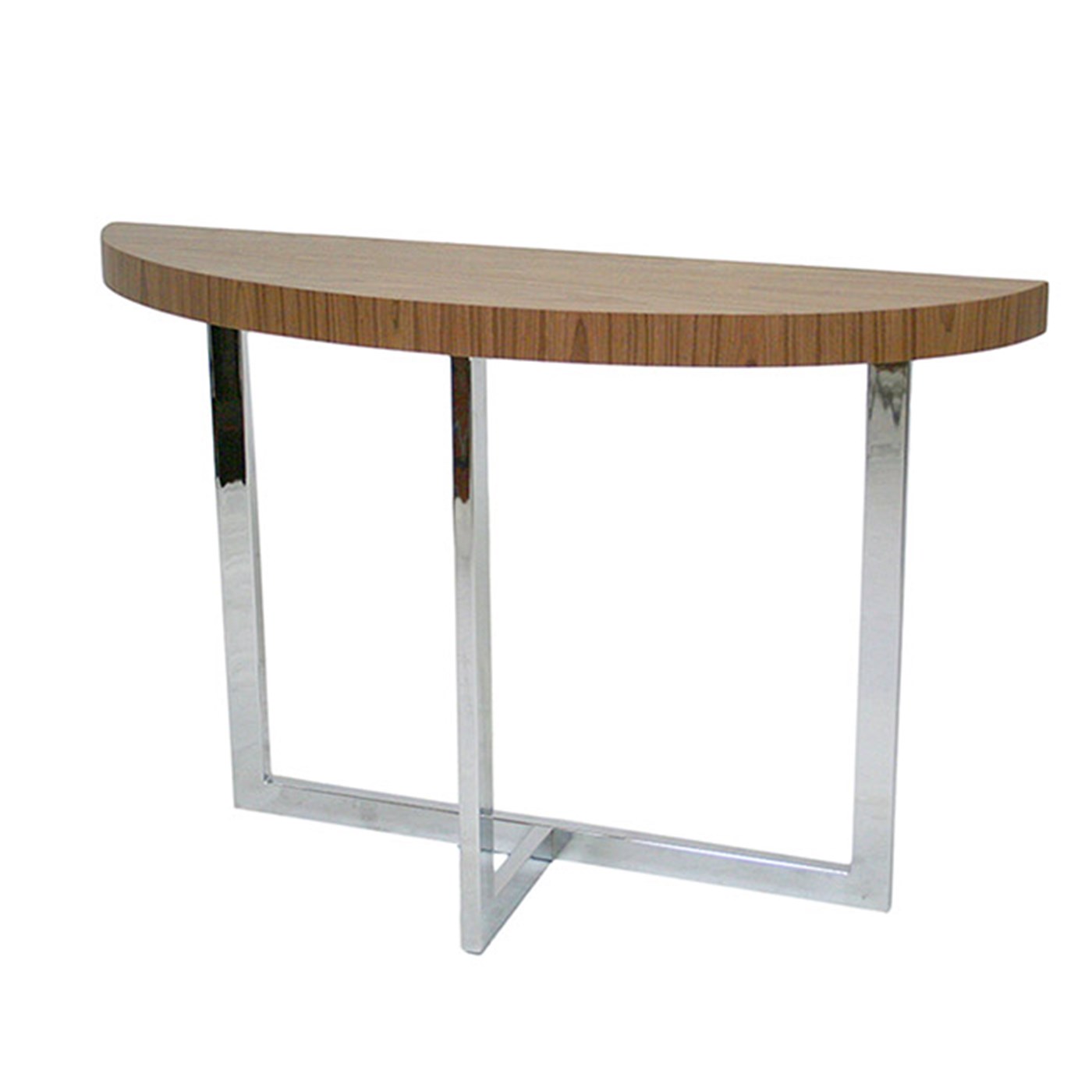 RACPSTOT816 47" Palma Sofa Table $307 Rental Palma sofa table half oval with veneer finish and metal accents.