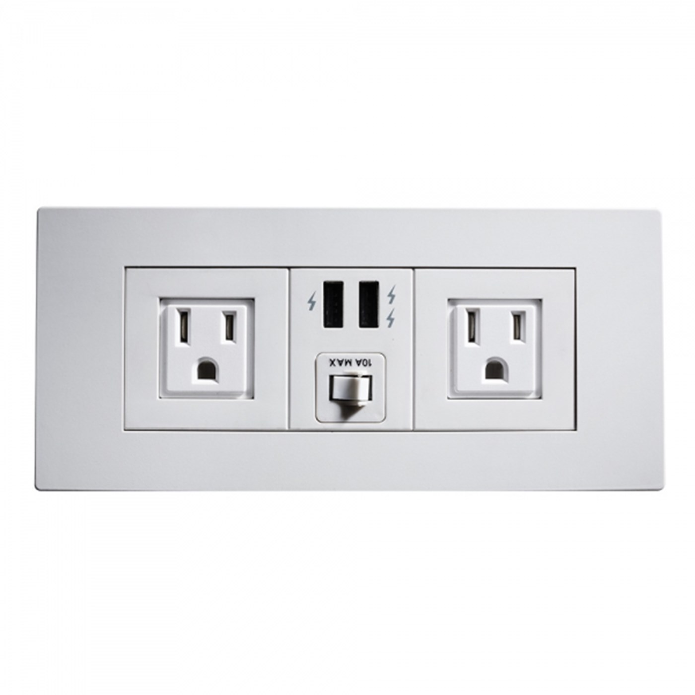 (2) In-arm charging panels on both sides with (2) A/C outlets and (2) USB ports. (1) 110V Power source is required for every charging panel. (2) charging units can be daisy chained together with 10A max per in-arm charging panel.