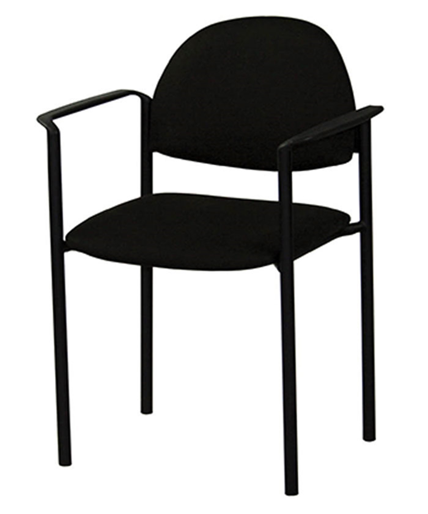 RACSACCO510 Stackable Arm Chair $110 Traditional rental Stackable arm chair with fabric seat and black accents.