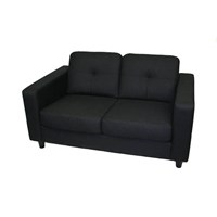 Traditional rental Solo loveseat with fabric cushion seating.