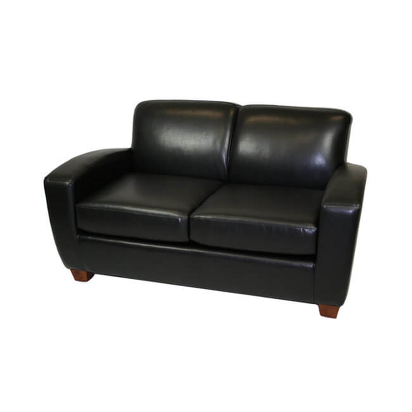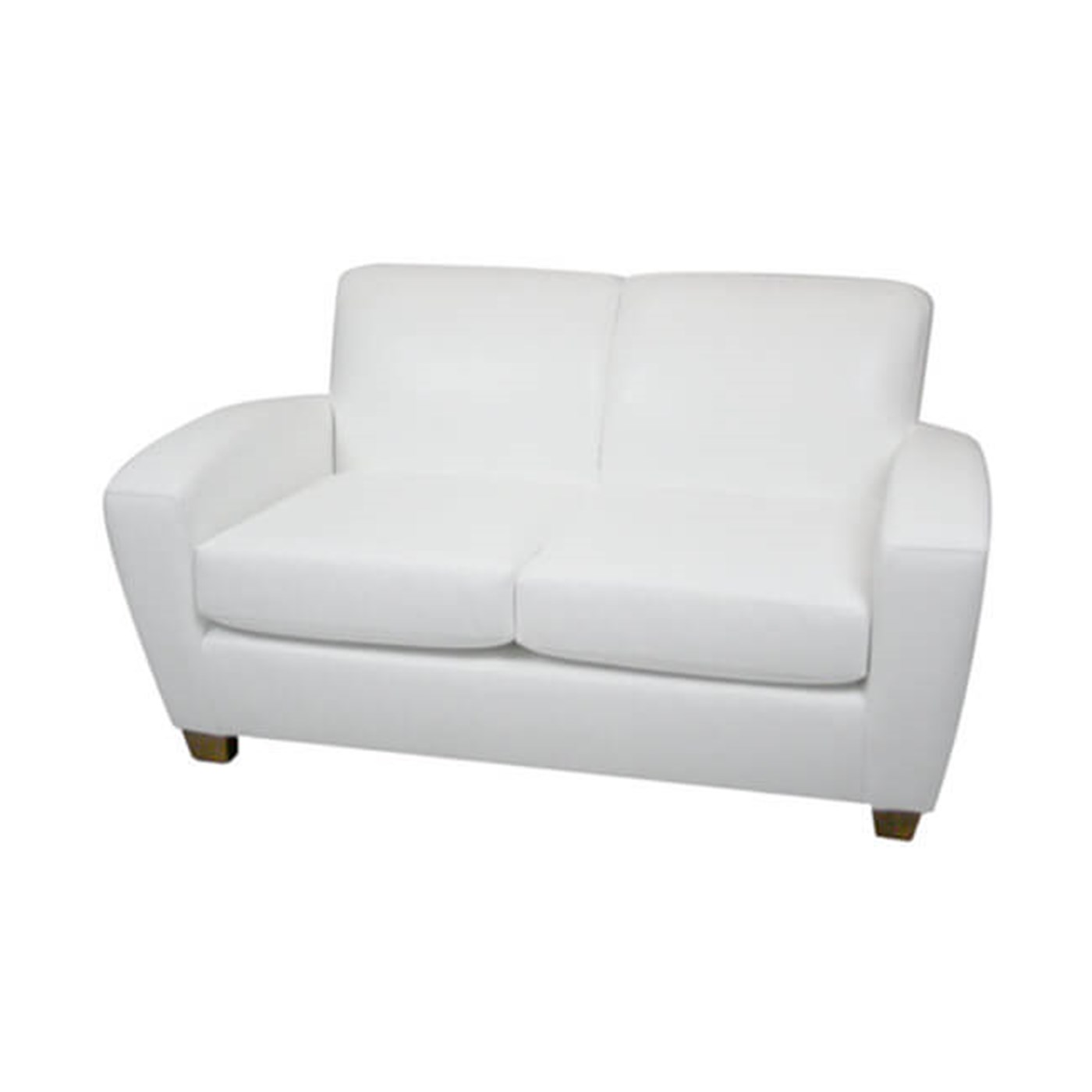 RACSLLLG707 59" Scandic Leather Loveseat $575 Traditional rental Scandic leather loveseat with plush seating and wood accents.