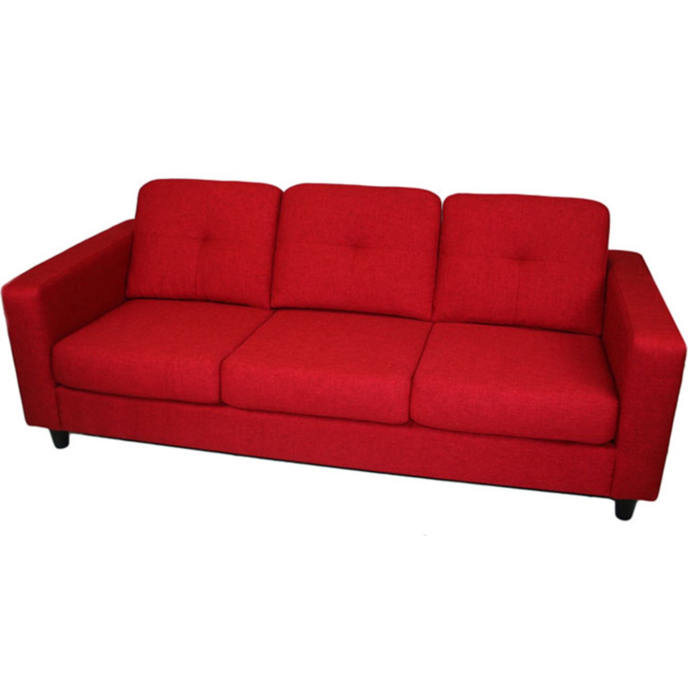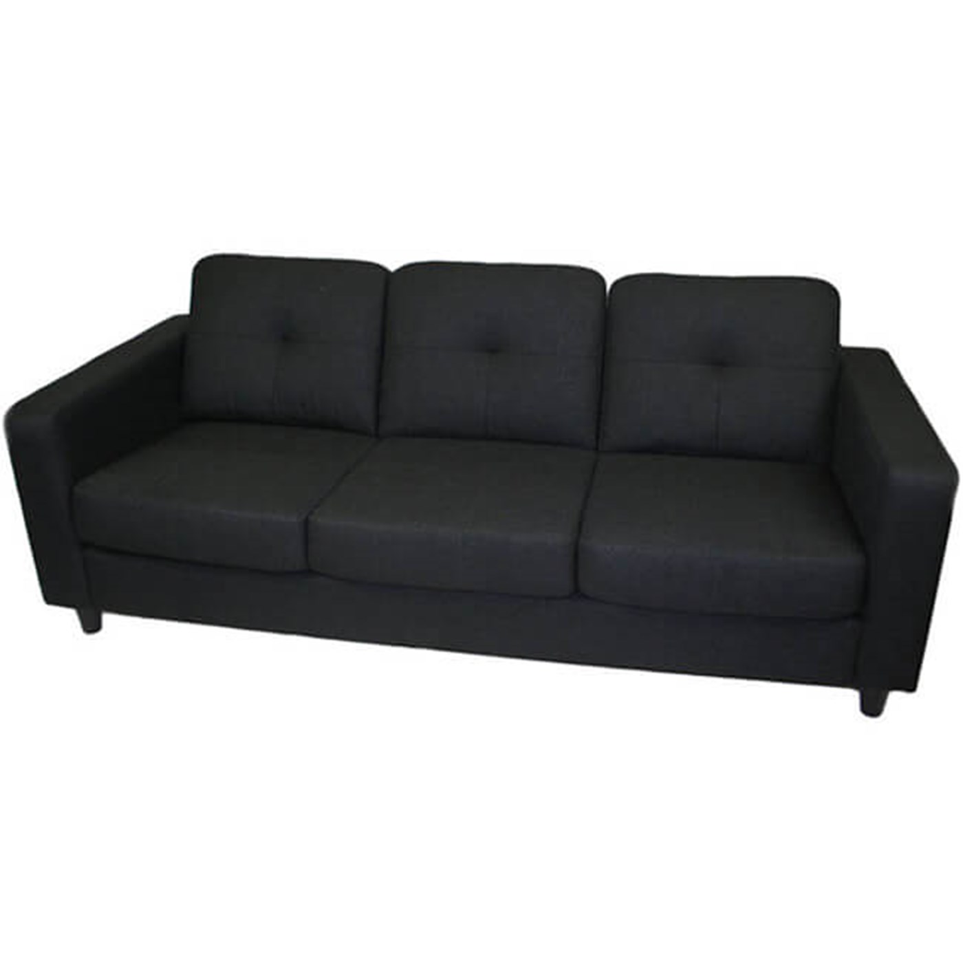 Traditional rental Solo sofa with fabric cushion seating.
