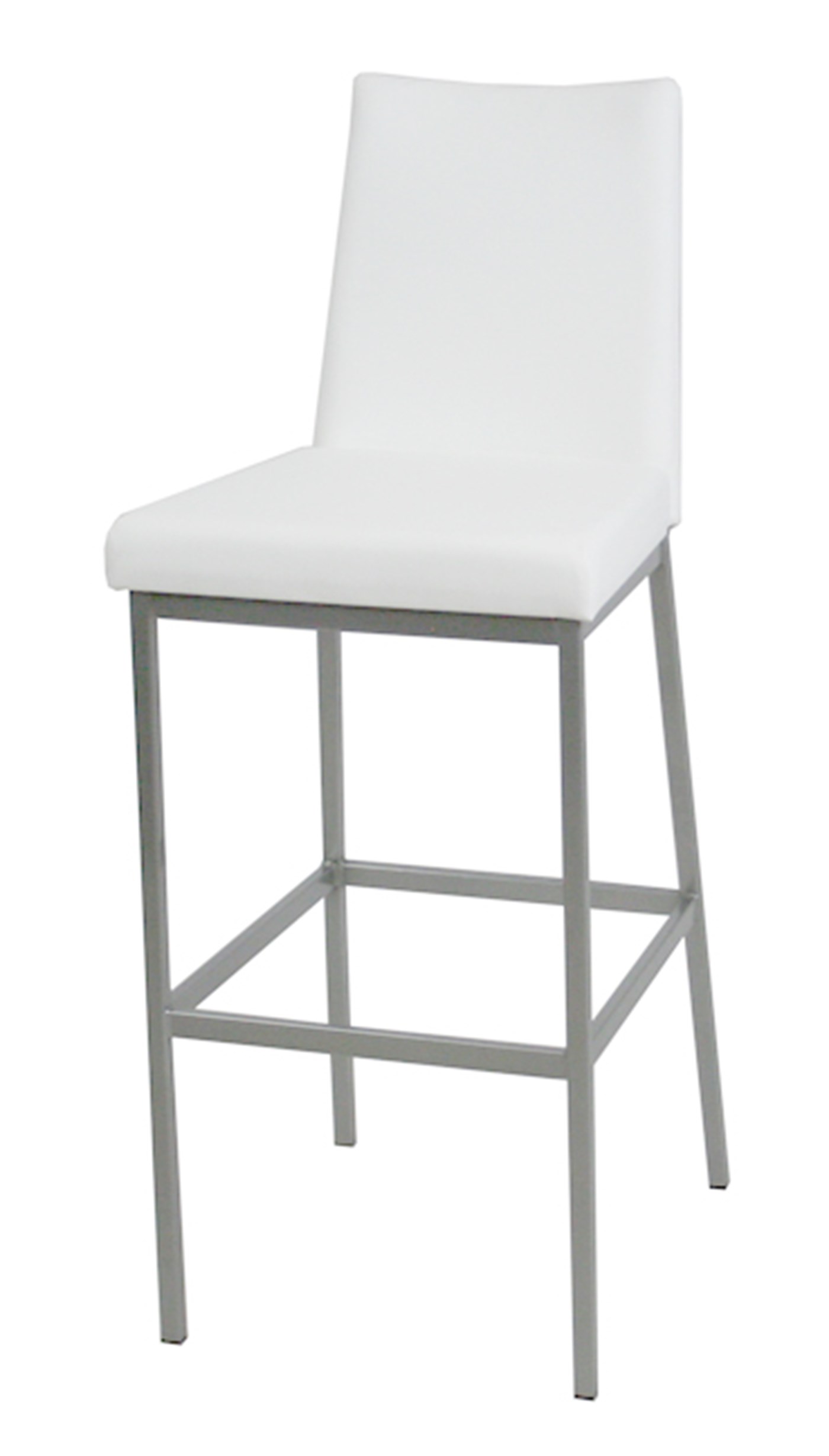 Rental Ticino bar stool with padded leather seat & back with brushed nickel accents.