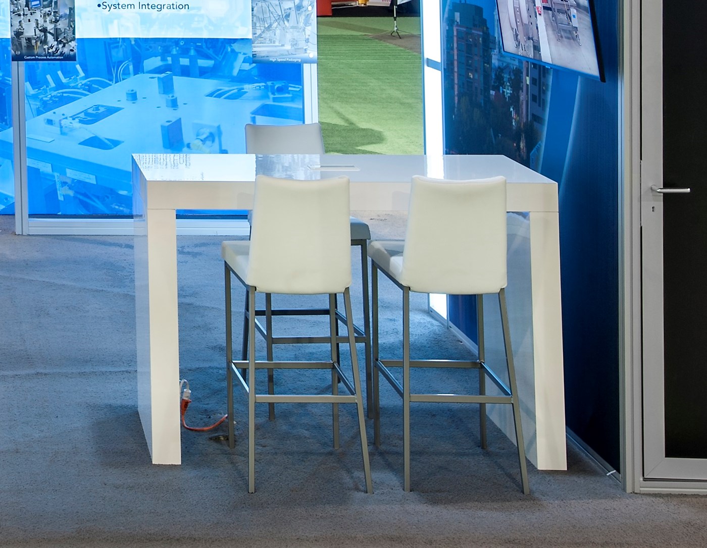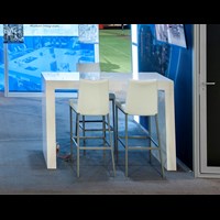 Rental Ticino bar stool with padded leather seat & back and brushed nickel accents.