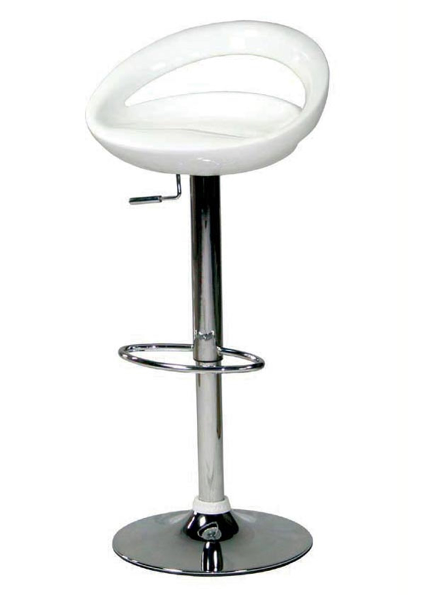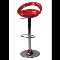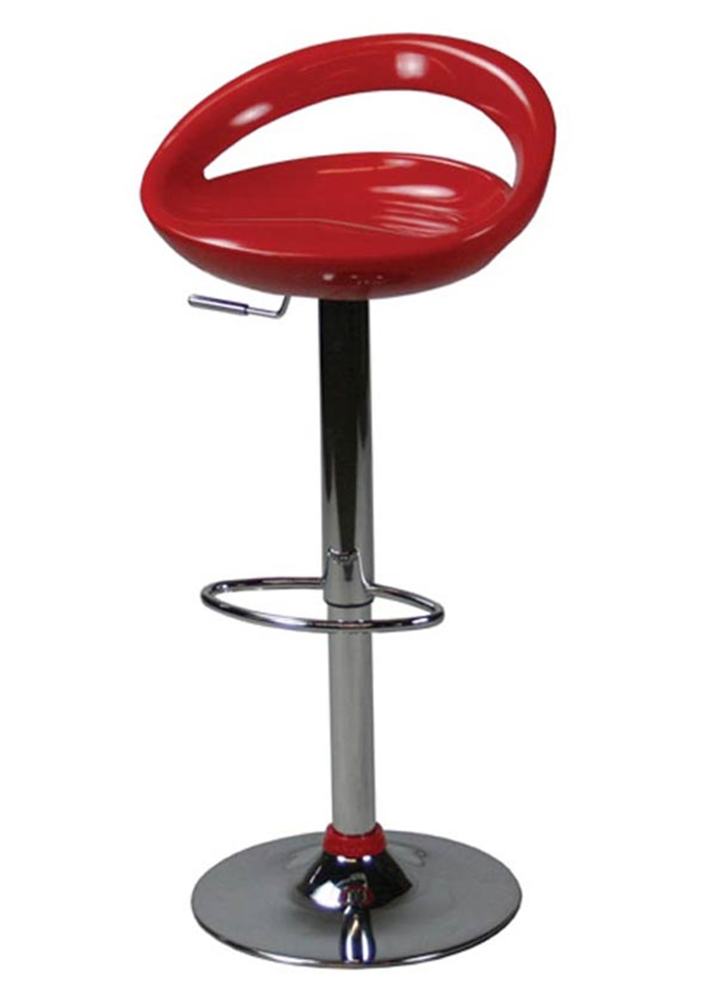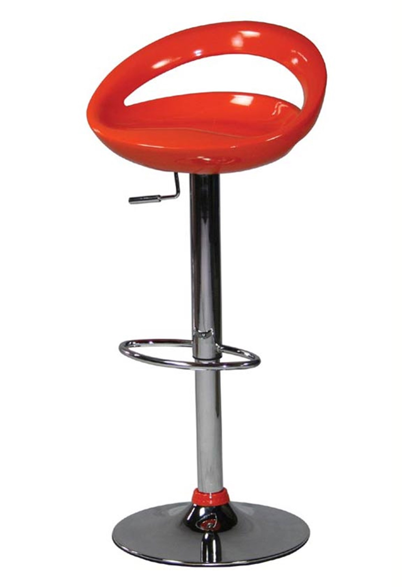 Tickle stool with contoured seat available in several glossy vibrant colors, chrome accents and adjustable height.