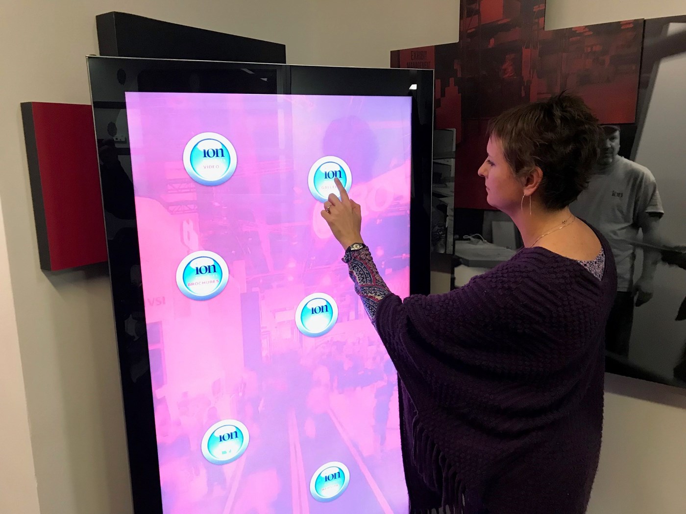 Create a lasting experience into your trade show display with an upright interactive 10 point touchscreen, showcasing digital brochures, movies, galleries, gaming and web links with Ion's Smart Touch Technology.