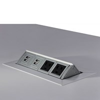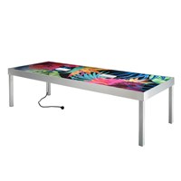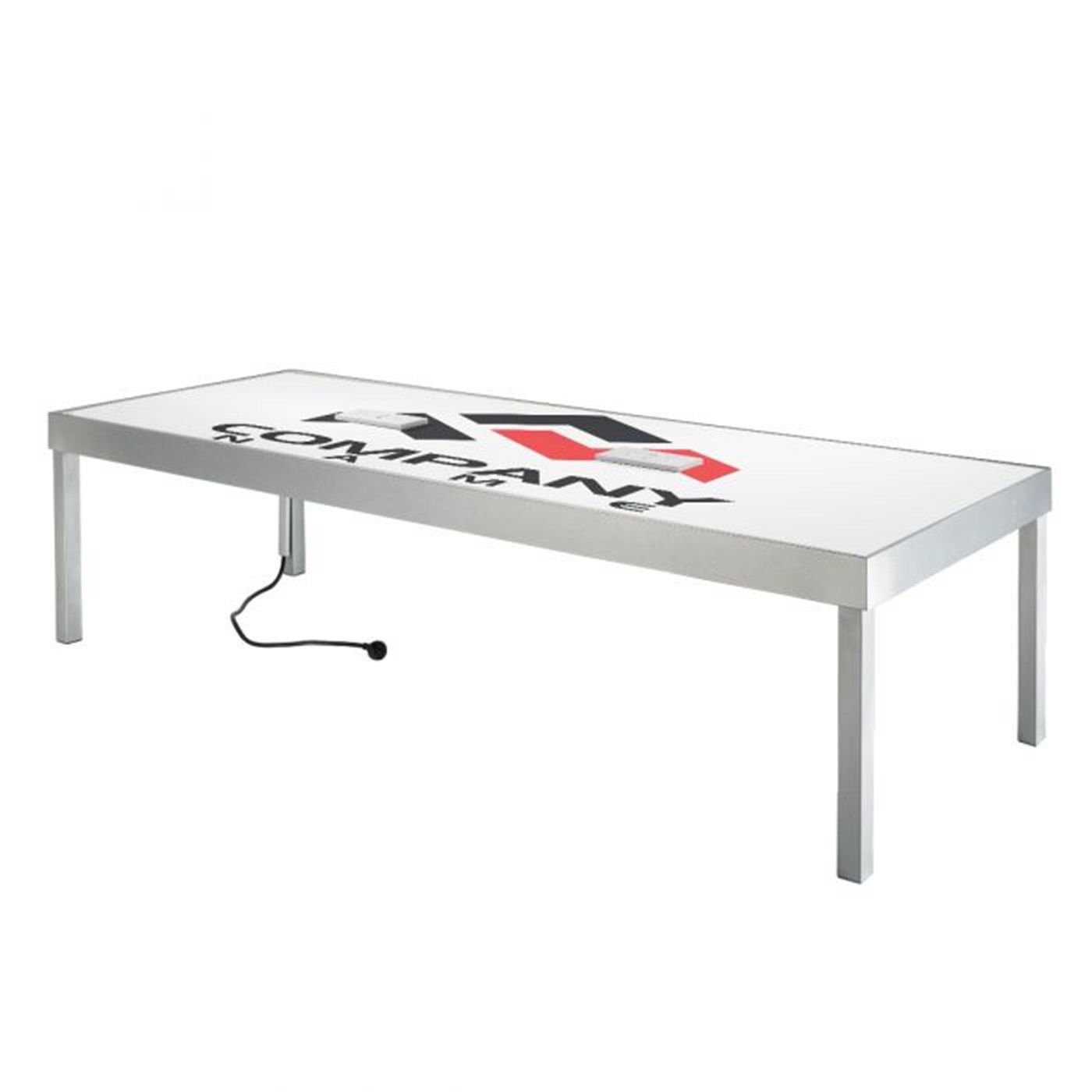 Bring branding and functionality to your next event with the Ventura communal cafe table with powered connectivity.