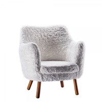 RACWCWAGCHR-CRT Wagner Chair $565 Scandinavian inspired rental Wagner chair with soft white fur upholstery.