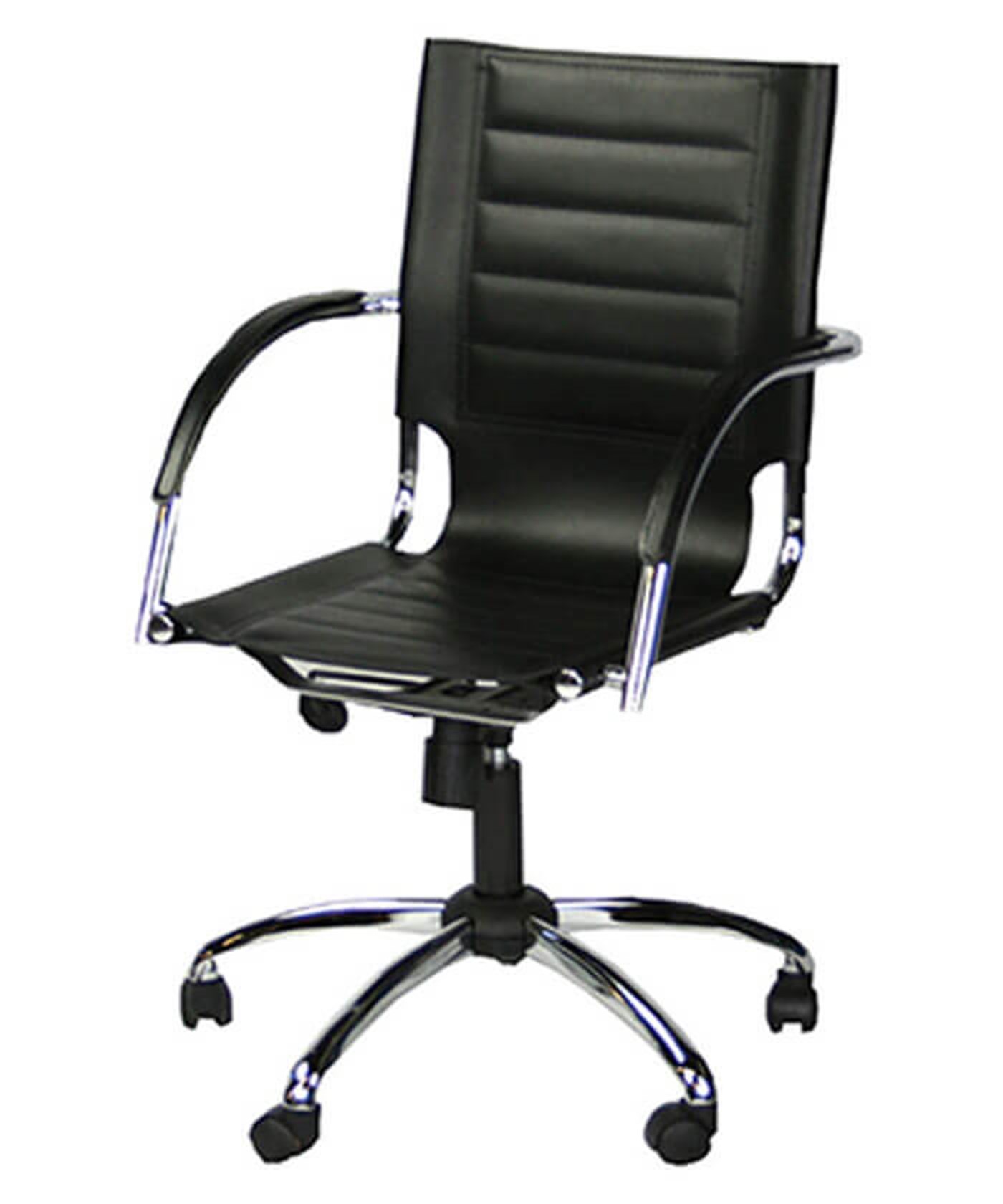 Office chair with chrome accents, gas lift, and casters
